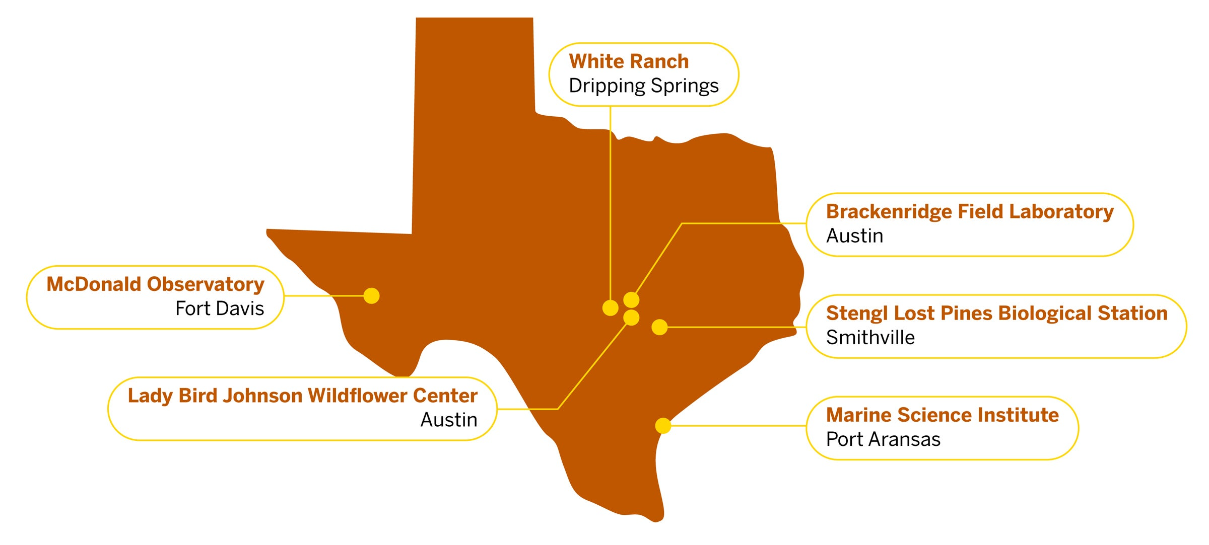 The Texas Field Station Network provides living laboratories where scientists, students, and communities engage with the diverse ecosystems of Texas. The University operates six active field stations across the state: