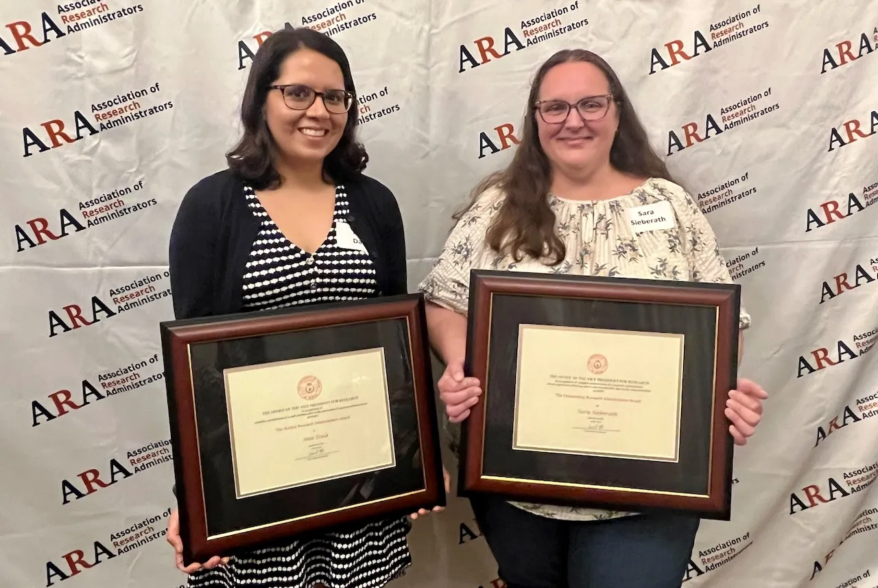 “When we say what starts here changes the world, one of the key ways we change the world is through research,” Jaffe said. “Research administrators like Sara and Ana are the backbone of sponsored research and are essential to maintaining relationships with the agencies, foundations, and partners who fund research across the University.”